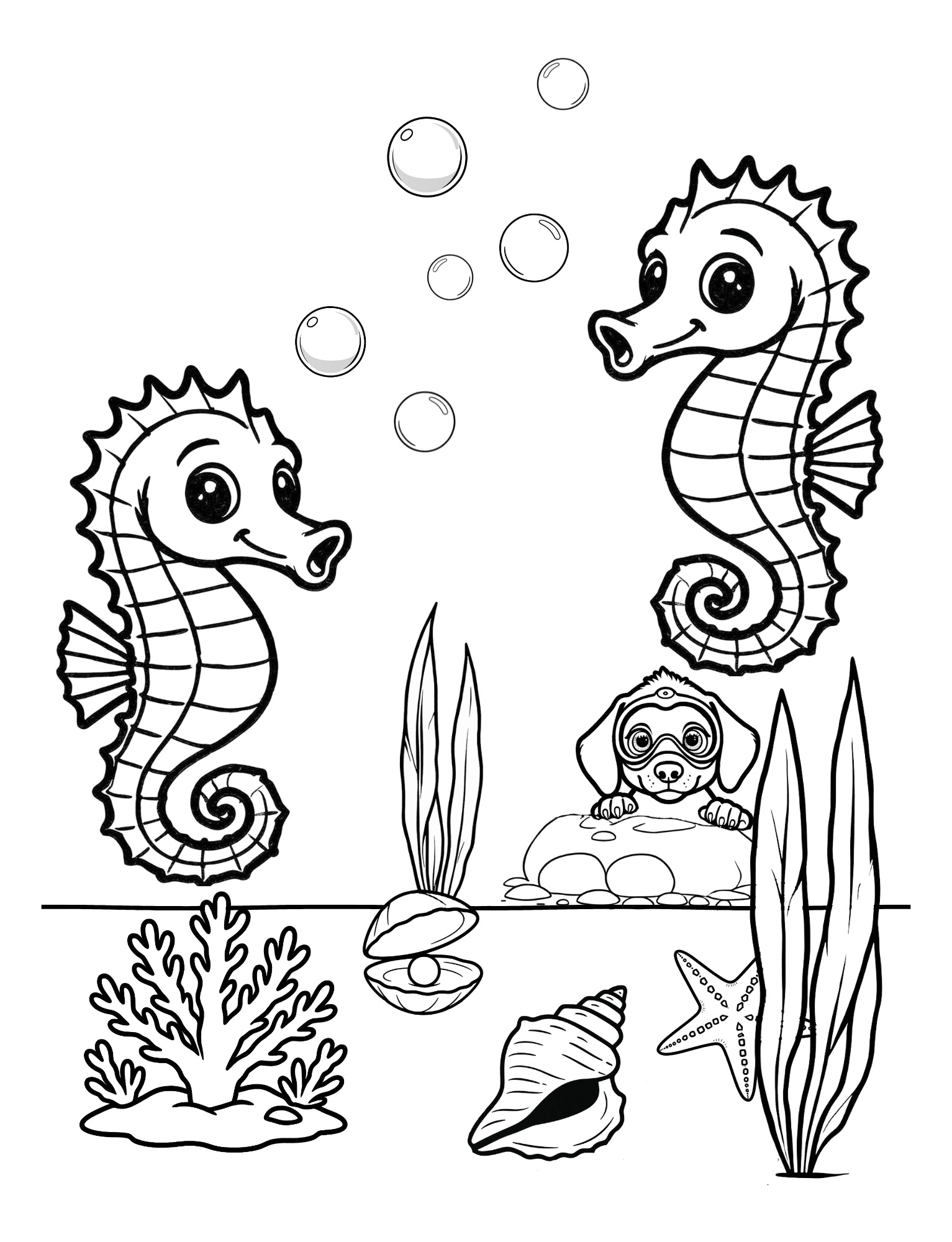 - Spot Evie Everywhere! Our cute, snorkel-wearing pup hides (but not too well!) on every single page—a fun “I Spy” twist that keeps the adventure going while coloring.